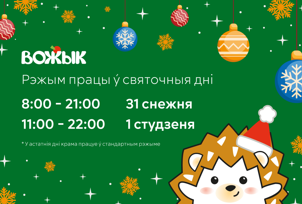 У нас вы знойдзеце ўсе неабходныя прадукты харчавання: мясныя і малочныя прадукты, бакалейныя тавары, кандытарскія вырабы, свежую садавiну і гароднiну. Тавары ў Вожыка толькi высокай якасцi i па “некалючых“ цэнах. І ўсё гэта побач з домам!
